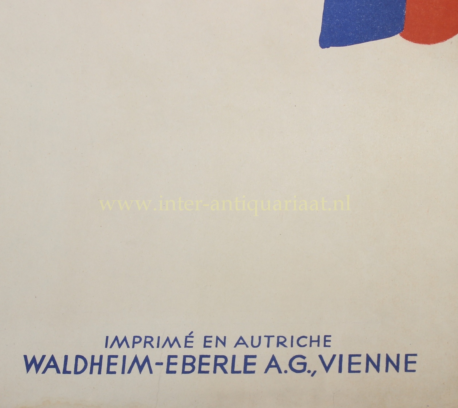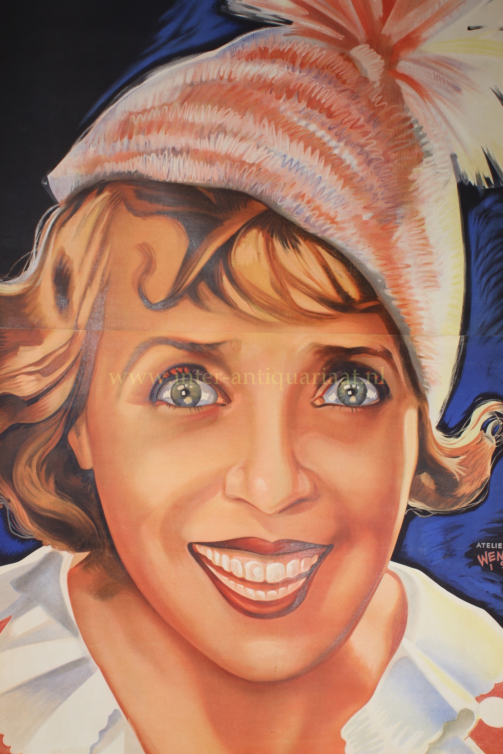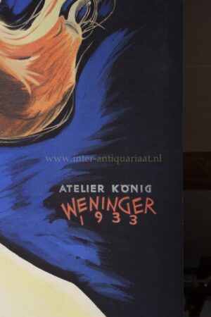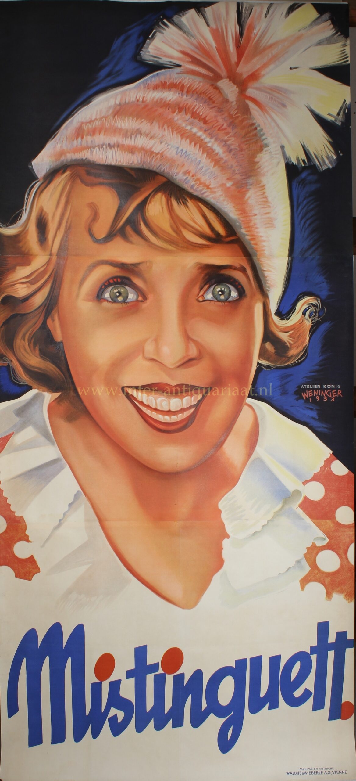 “Mistinguett”, kleurenlithografie of drie gemonteerde bladen ontworpen door Emmerich Weninger in 1933 en gedrukt door Waldheim-Eberle te Wenen. Afm. 275 x 124 cm.