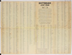 “Rotterdam ‘Cito’ plan, groote uitgave”, lithografische offsetdruk uitgegeven in 1935 door N.V. “Cartographia” H. van Diehlen & Co. te Den Haag. Afm.: 47 x 62 cm.