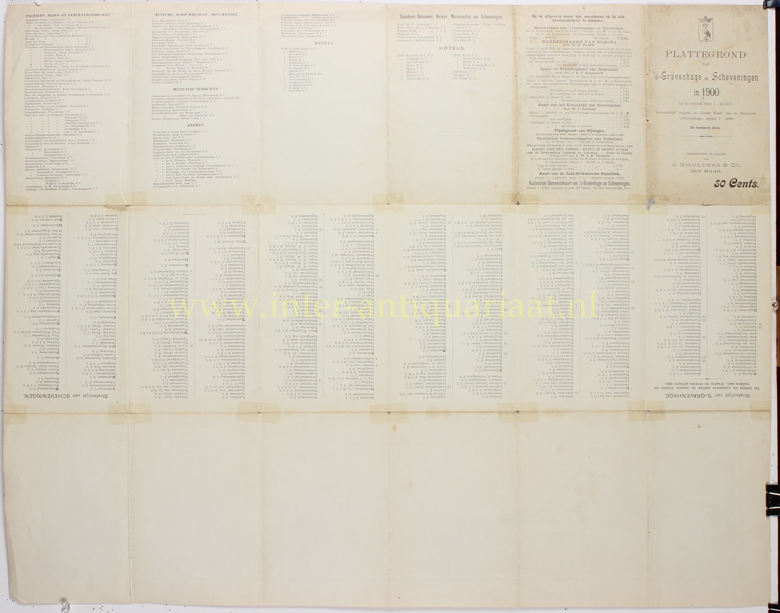This fine and detailed city plan shows The Hague and Scheveningen at the dawn of the twentieth century – a period of rapid urban expansion and modernization. The map was published by the Hague lithographer and publisher J. Smulders & Co., renowned for their topographical and city maps.